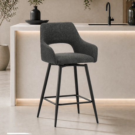 131,03Prezzo unitario /Non disponibileSgabello Bar Girevole Tessuto Nero Skye - Altezza seduta 67 cm - Con braccioli
