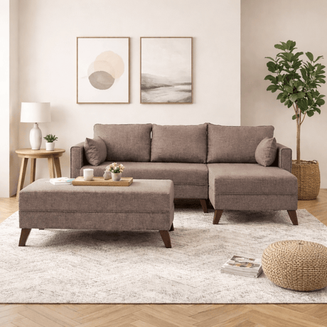 504,08Prezzo unitario /Non disponibileModerne Hoekbank Rechts Taupe Stof Aniko met Chaise Longue 238x142x78 cm