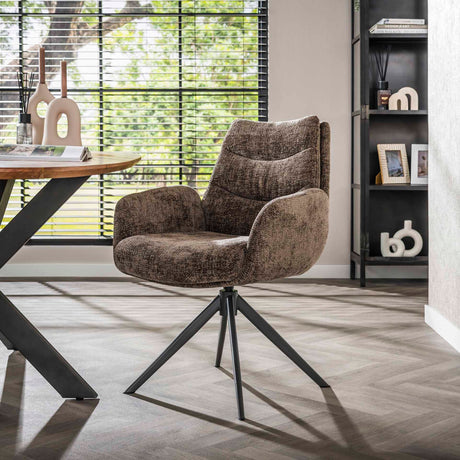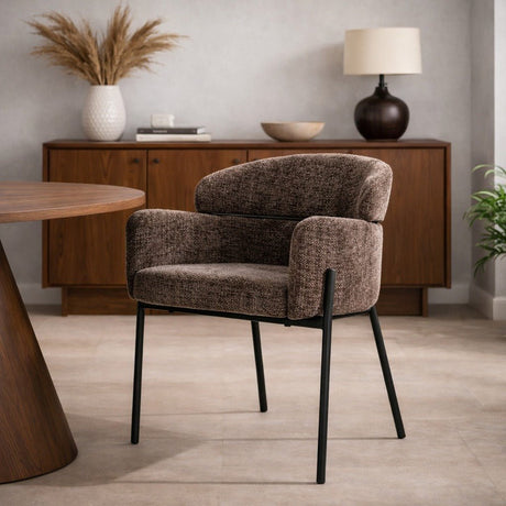 Sedia da pranzo Chenille Brown con schienale e braccioli rotondi - Lola