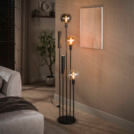 Vloerlamp Fons 3-lichts ringen metaal zwart