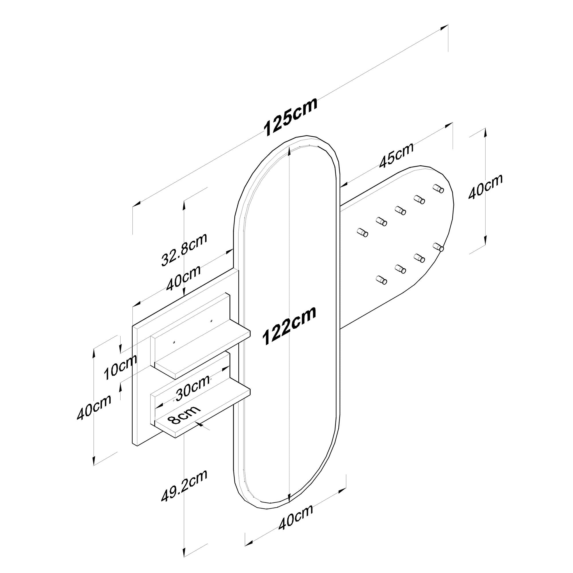 Descrizione e specifiche di Appendiabiti Melamina Bianca a 9 Ganci - Con Specchio - Due Ripiani - Hally