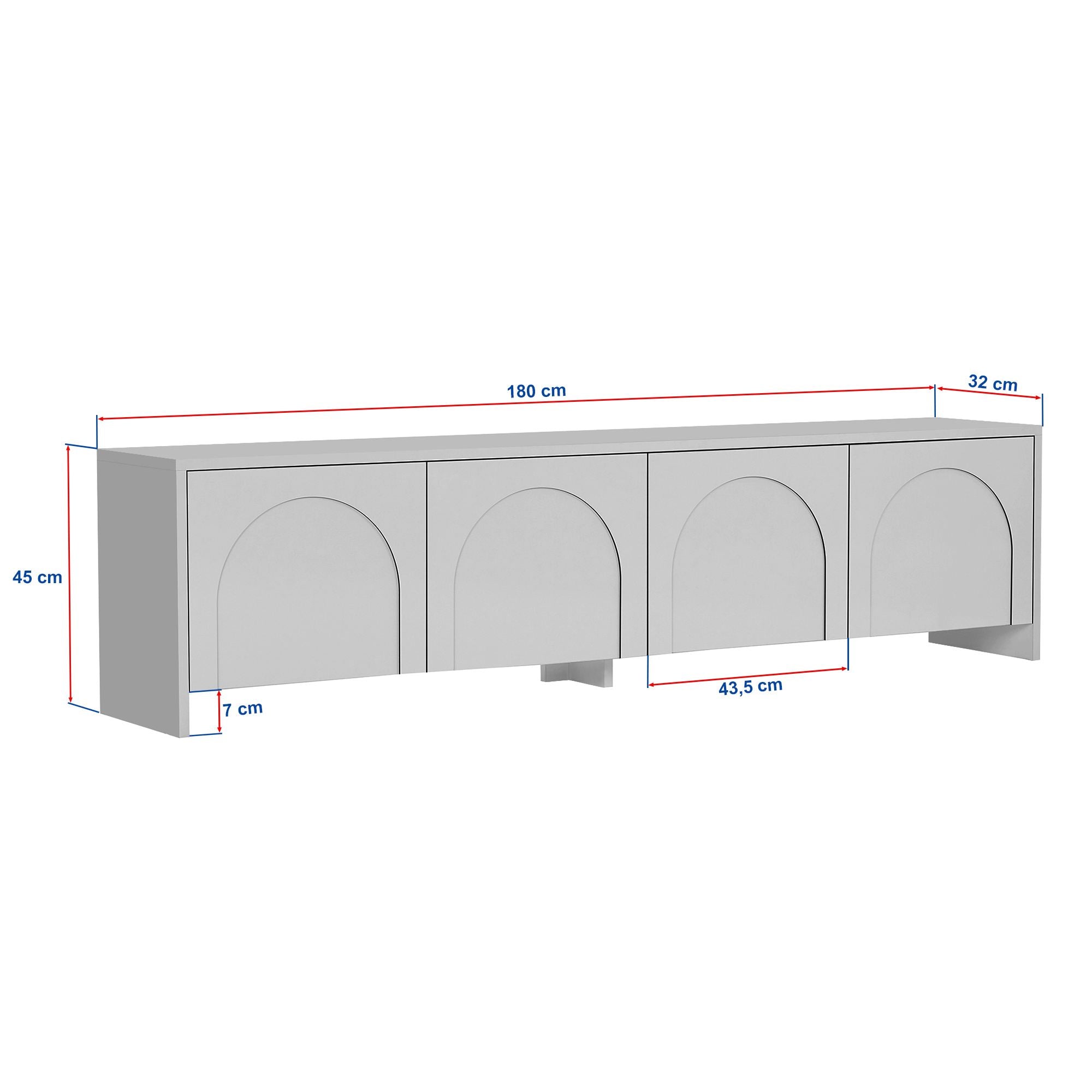 Geef je woonkamer een serene en stijlvolle upgrade met Tv-meubel Aurelia. Dankzij het unieke 3D-reliëf met elegante bogen en de greeploze afwerking is dit meubel dé eyecatcher in een modern, Scandinavisch of Japandi interieur.