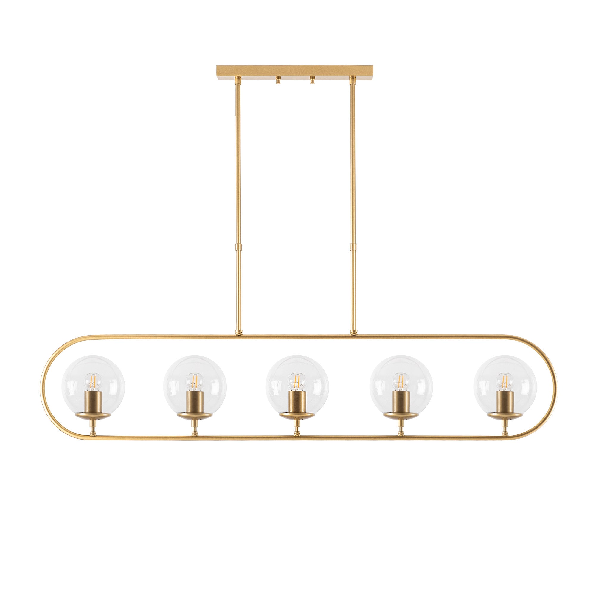 Con una dimensione di 122 x 15 cm e un'altezza totale di 49-91 cm, questo lampadario è perfetto sia per spazi piccoli che grandi. Grazie all'altezza regolabile, puoi adattare l'illuminazione secondo i tuoi desideri e creare l'atmosfera perfetta per ogni occasione.