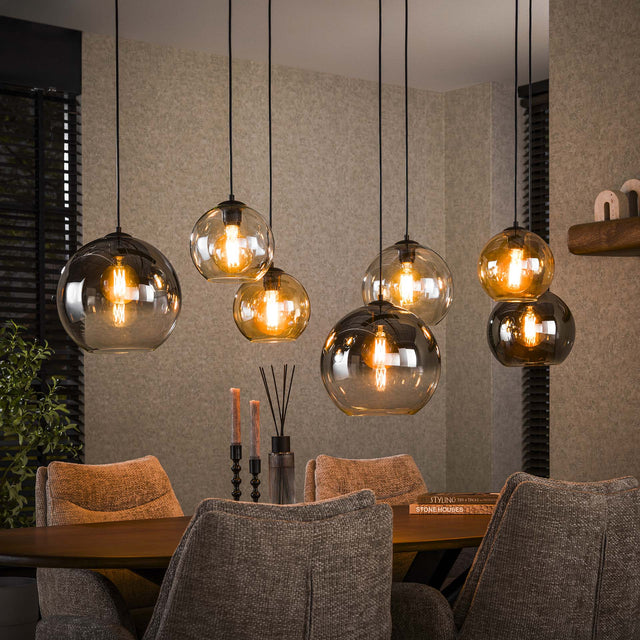 La lampada a sospensione Juliette è una gioia per gli occhi e si adatta a qualsiasi interno! La lampada a sospensione contiene non meno di sei o sette paralumi, che possono essere regolati individualmente in altezza fino a 150 cm. La lampada a sospensione Juliette è facile da fissare al soffitto e fornisce luce sufficiente. I paralumi in vetro hanno una finitura in vetro fumé e assicurano che la luce d'atmosfera sia perfettamente distribuita in tutta la stanza. La Juliette è una lampada a sospensione robusta ma elegante per ogni stanza.