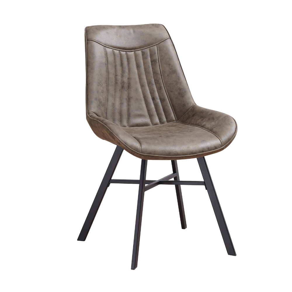 Eetkamerstoel Jada is een stijlvol ontwerp gemaakt van eco-leer in combinatie met zwart stoer metaal. De stoel beschikt over een comfortabele zitting waar je uren op kunt tafelen!