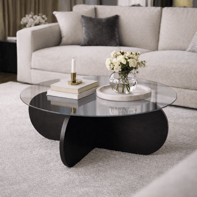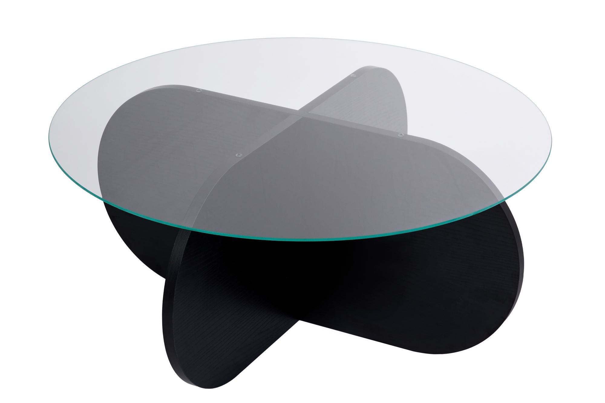 Tavolino rotondo Aris melaminico nero e vetro trasparente 75 cm